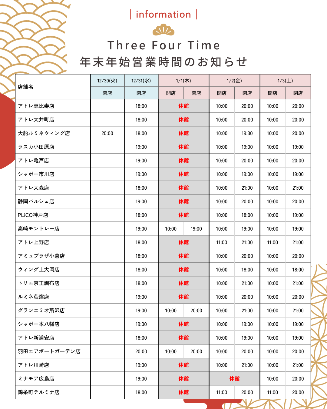 ※年末年始のイベントはオンライン、各店舗ごとに異なります。予めご了承ください。